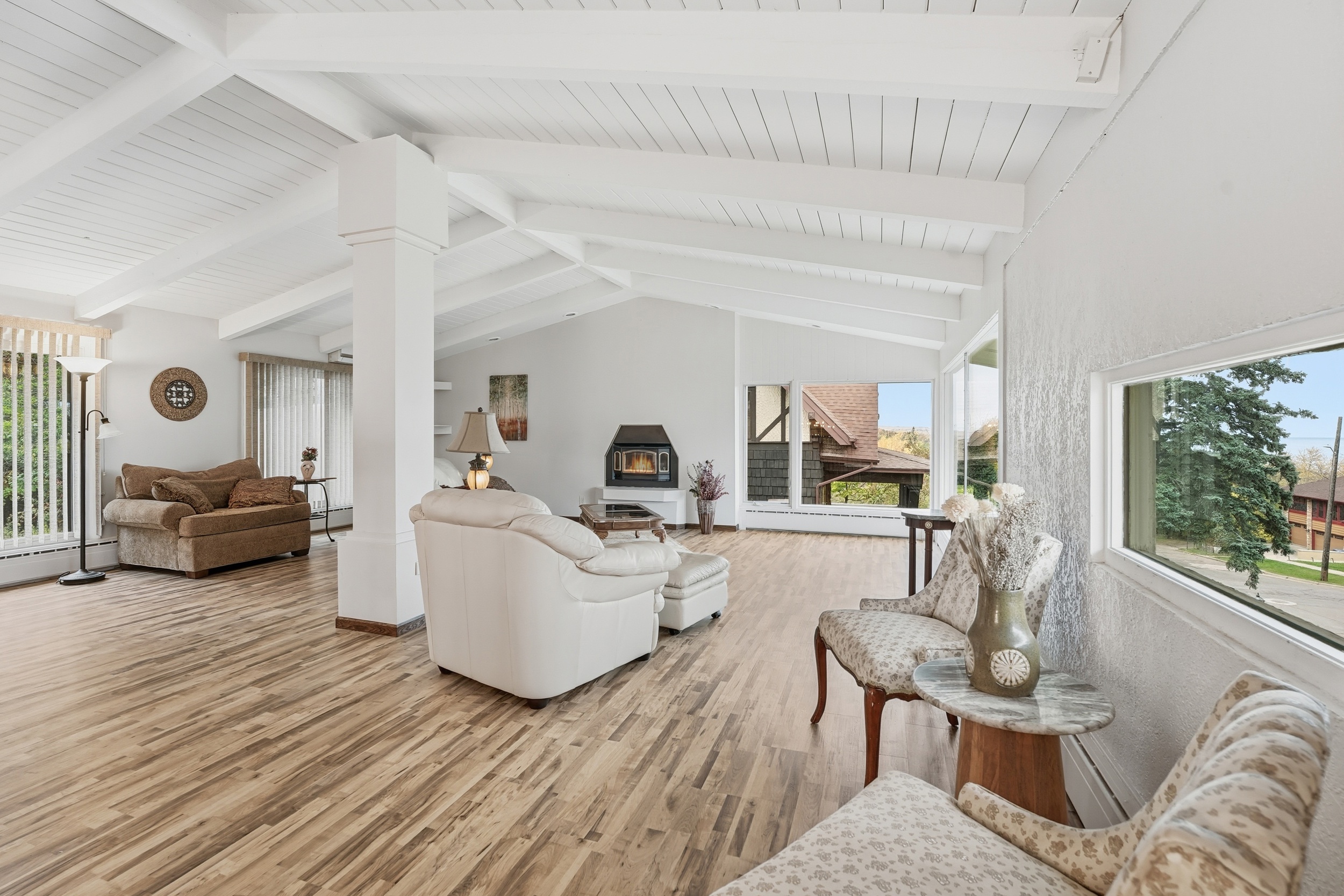 This three-bedroom, three-bathroom home offers approximately 3,096 square feet of living space on a 0.43-acre lot with captivating views of the nearby Lake Superior. The lower level could be an extra bedroom, family room, or a stand alone apartment. The large great room has captivating views of Lake superior and peek-a-boo views of Hawks Ridge and Park point. The kitchen is a wonderful gathering place for cooking or entertaining. Downstairs in the unfinished basement, there is room for a craft room and a shop! The double lot has a fully fenced in backyard and a large unfenced side yard. Don't miss out on this fun, funky find!